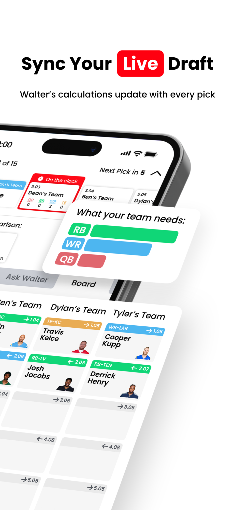 Get real-time, pick-by-pick insights during your LIVE fantasy draft based on what your team needs.