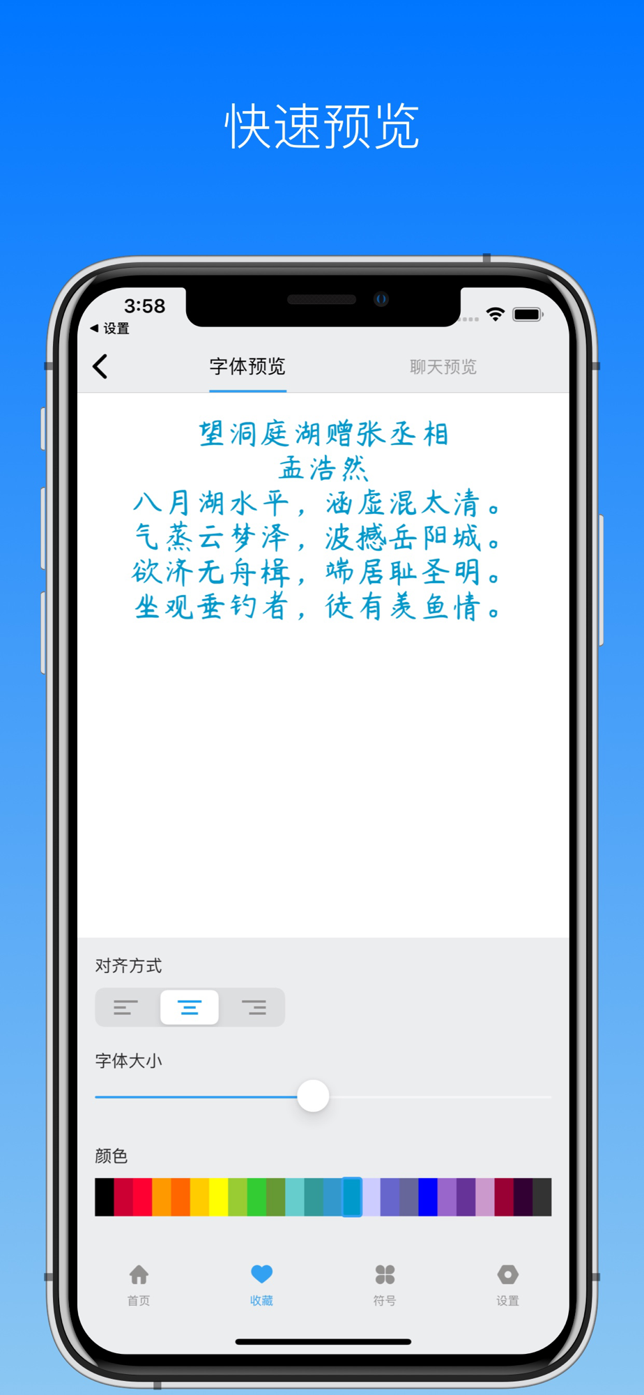 所有字体都配有预览文案,另外也可以自己输入文字,调整文字颜色、大小