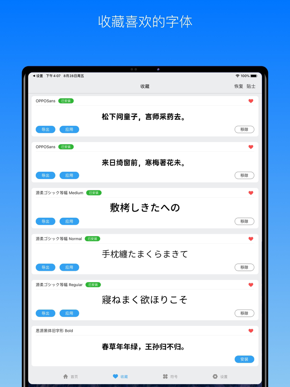 数百款精美字体一键安装,可用于第三方app