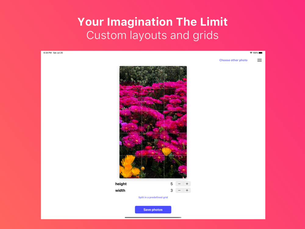 Griddy Plus is an app that helps you split your image into tiles and post them to Instagram easily and quickly with different layouts.
