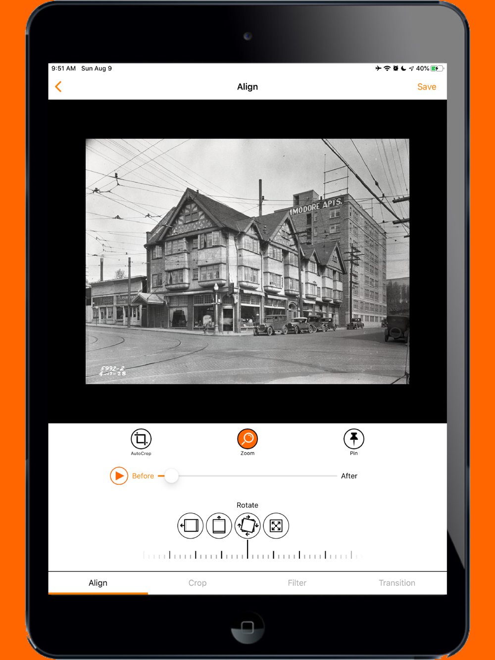 For users in Seattle, Washington, the app comes preloaded with a large number of public historic photos that you can use to make your own time warp videos of Seattle.