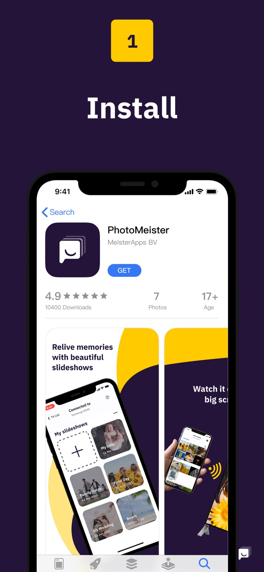 Effortlessly admire your slideshow on your Smart TV. PhotoMeister automatically recognizes your TV on your home network, making it very easy for you. It's a piece of cake!