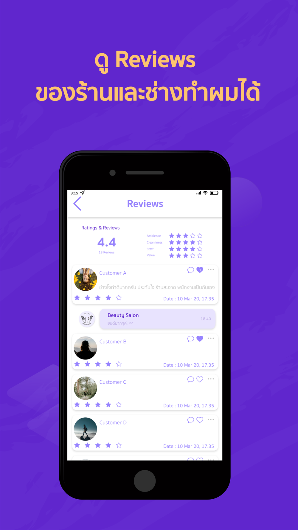 - ดูรีวิวของร้านและช่างแต่ละคนได้