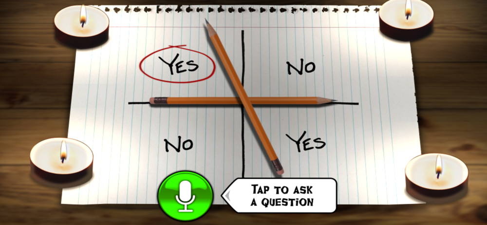 Press the button to ask your own questions and Charlie Charlie will answer, but beware - Charlie Charlie likes to play tricks and you may get a scary jumpscare instead!
