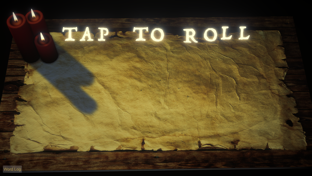 Necro Dice functions by generating a handful of dice with random letters assigned to each of the six faces of each dice. These dice are then simulated with an advanced physics engine that handles dice to table and dice to dice collisions. When the physics simulation completes and the dice settle the result is a jumble of letters shown on the top face of the dice. Normally when using dice, the user is then required to inspect the dice to try and find words in this jumble of letters. This app uses a proprietary algorithm to inspect the top faces of the dice and try to match words and names to a dictionary. A word is chosen from the jumble of letters based on many factors including distance, length, location and relevance. Once a word is detected in the dice, the app will highlight the individual letters on the dice and display the word on the screen. A list of words rolled since the start of the app can be accessed in the word log by pressing the button at the lower left of the screen.
