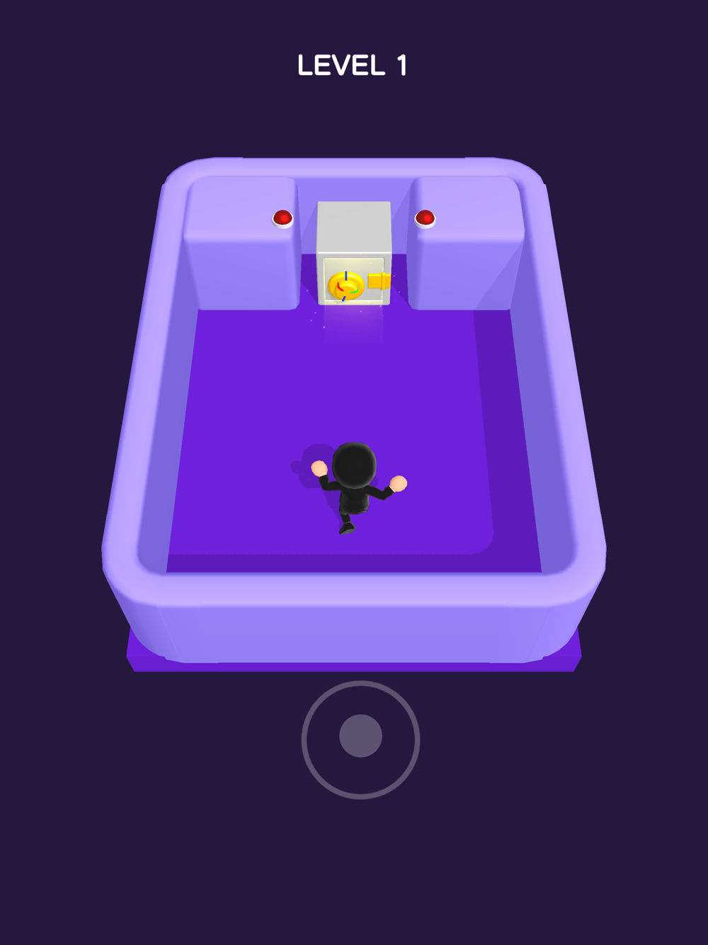 Move around without being seen by the guards. Find the safe, and break it open before anyone notices.