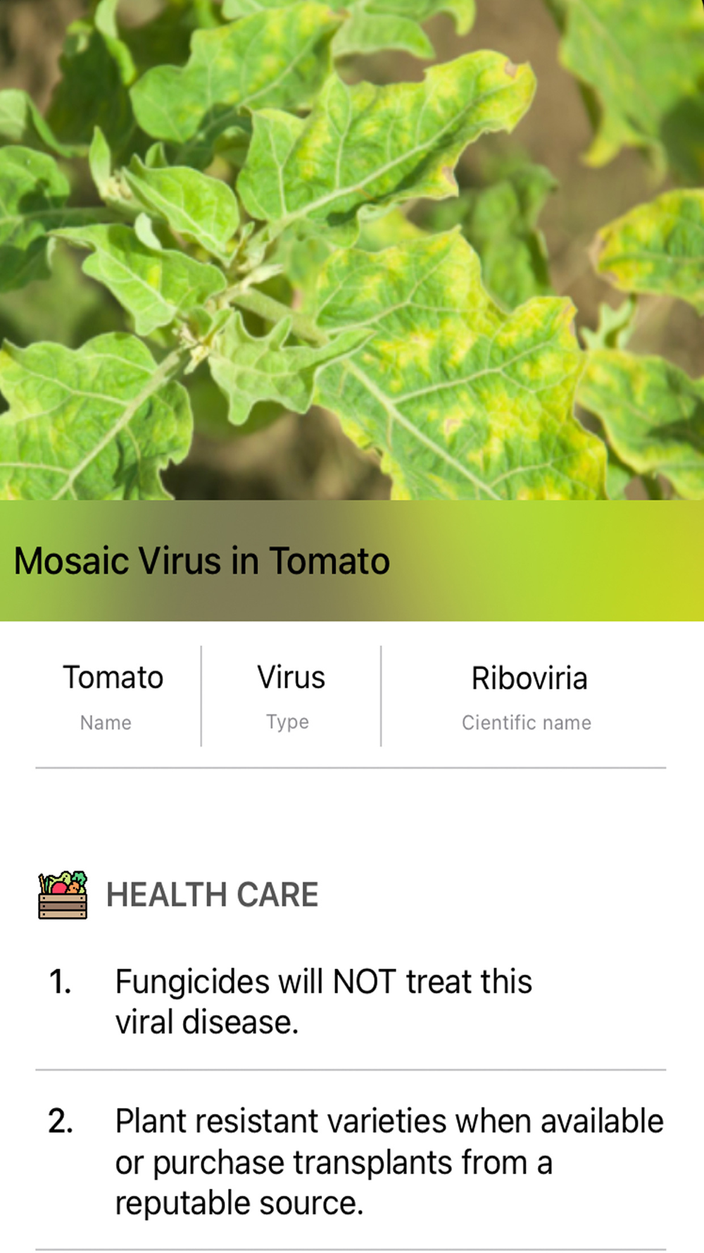 This app allows the opportunity to use computer vision techniques to monitor the disease type and severity and increase yields.