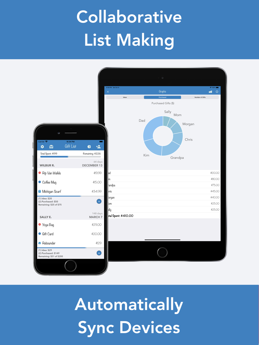 Seamlessly create and share your birthday list with other users. Updates are shared in real time. Need to keep certain gifts a secret? Mark gifts 'private' if needed.