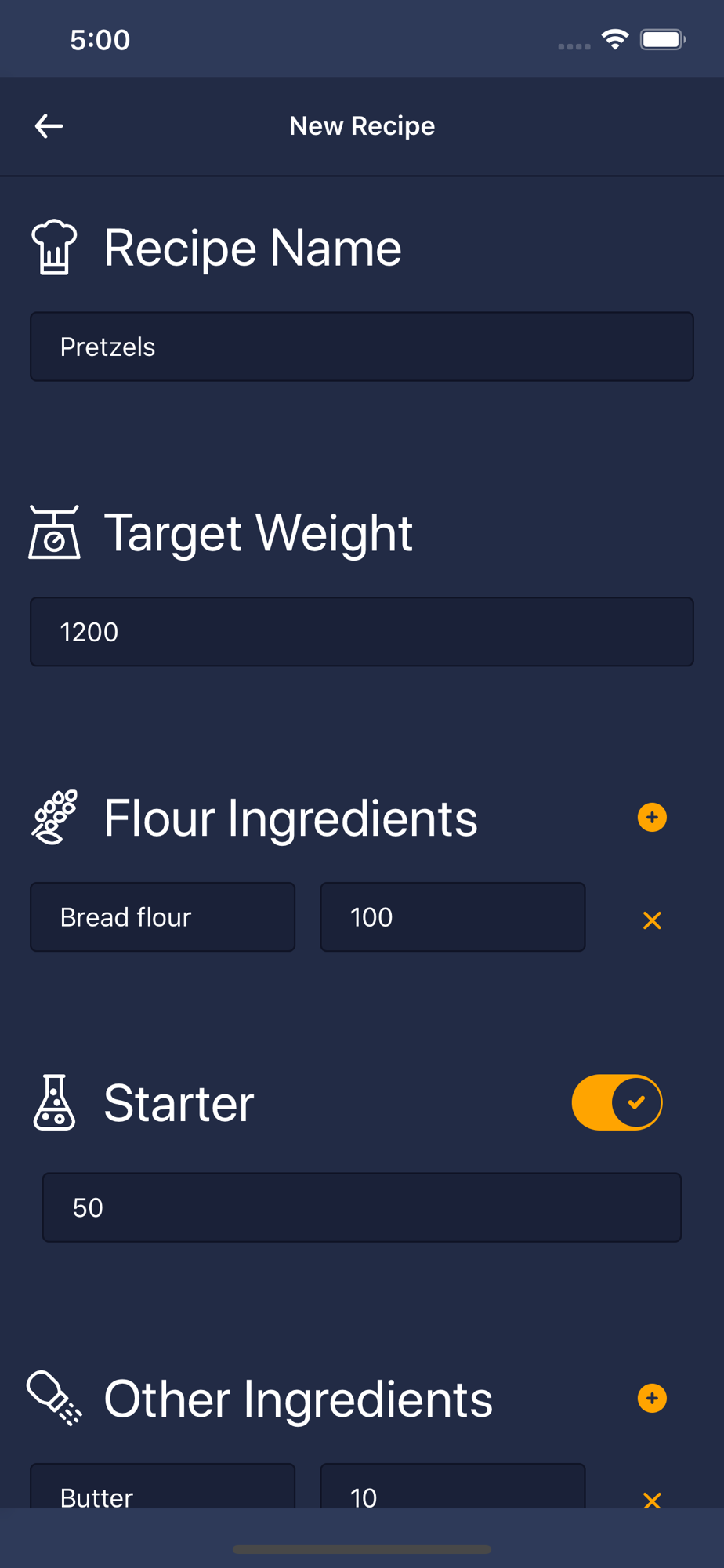 Instead of manually calculating your ingredients based on the weight of the flour, the app takes care of everything for you. There's even a handy multiplier feature for when you need to scale up.