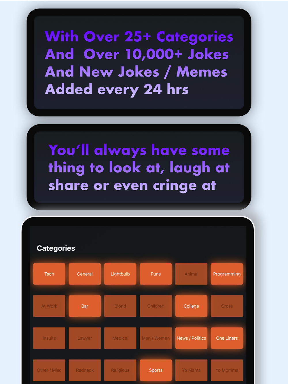 Get daily jokes by enabling notification and picking the time you want jokes to be delivered to you!