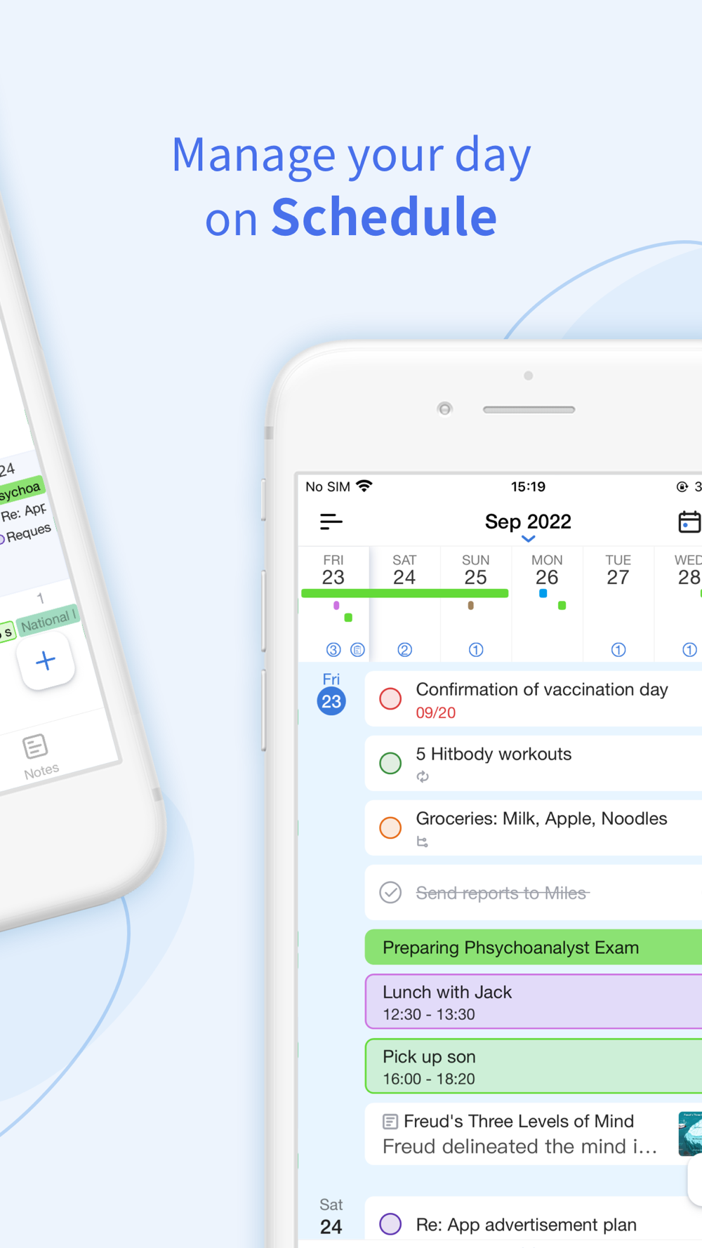 - Quickly add tasks, events, and notes of the day by long-pressing on the calendar.