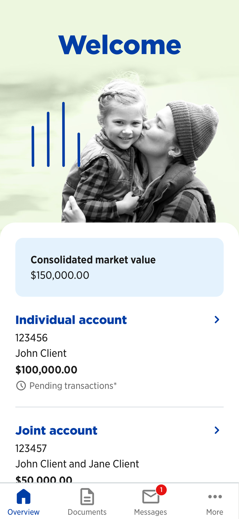 Allows you to view the details of all your accounts, the list of client numbers belonging to the client connected to the application, the consolidated market value of all accounts, including those of family relationships created to share account information with you
