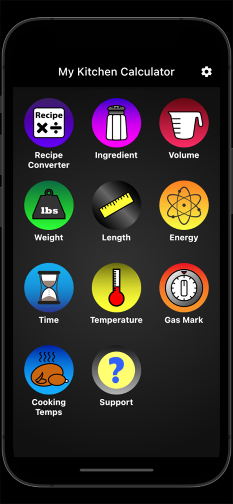 In addition to conversion calculators, the app has a Gas Mark reference and a cooking temperature references that allows you to quickly look up information about cooking temperatures for meat, candy, and other dishes.