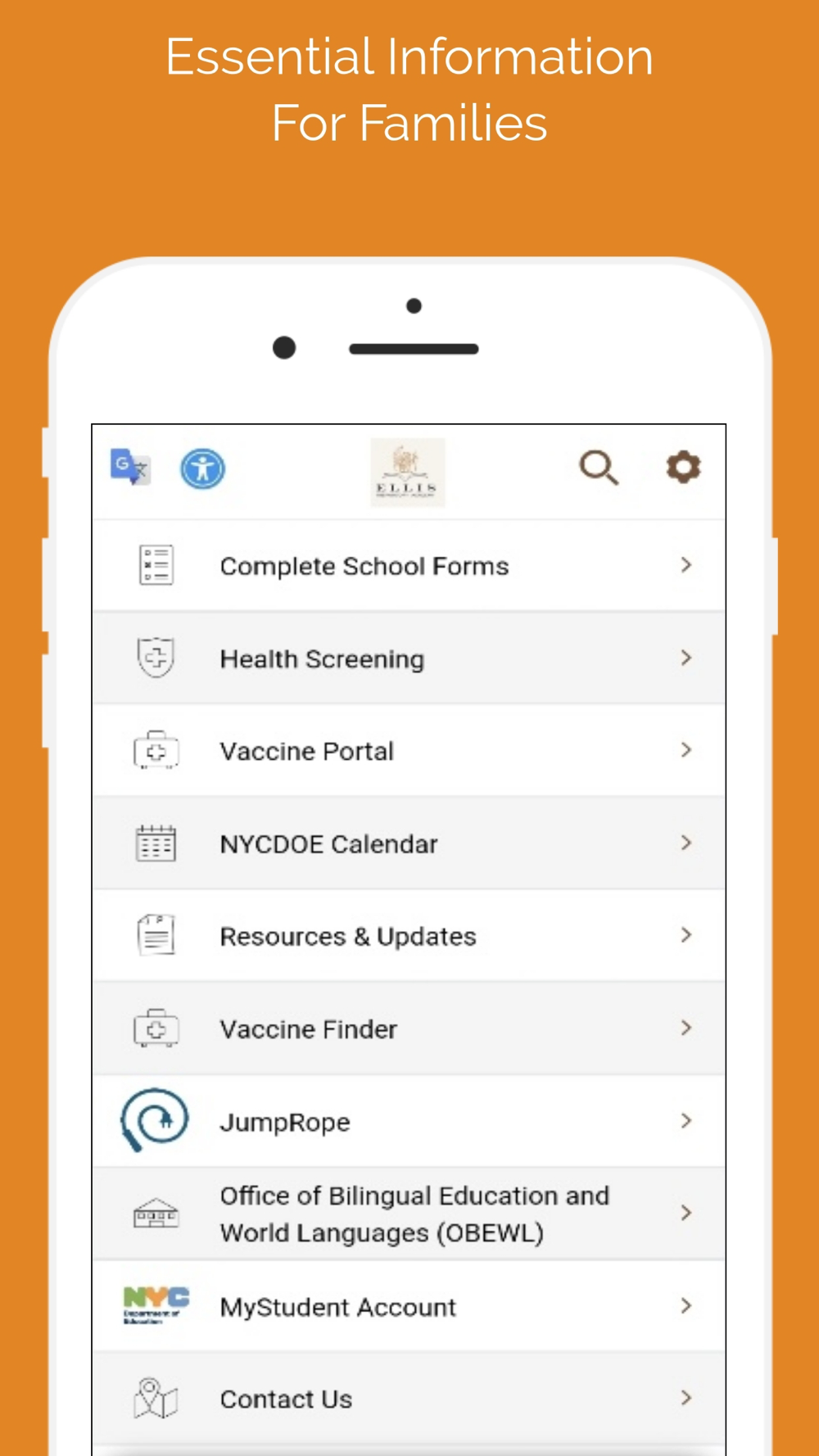 Instant translations to engage with the school's content in your preferred language.