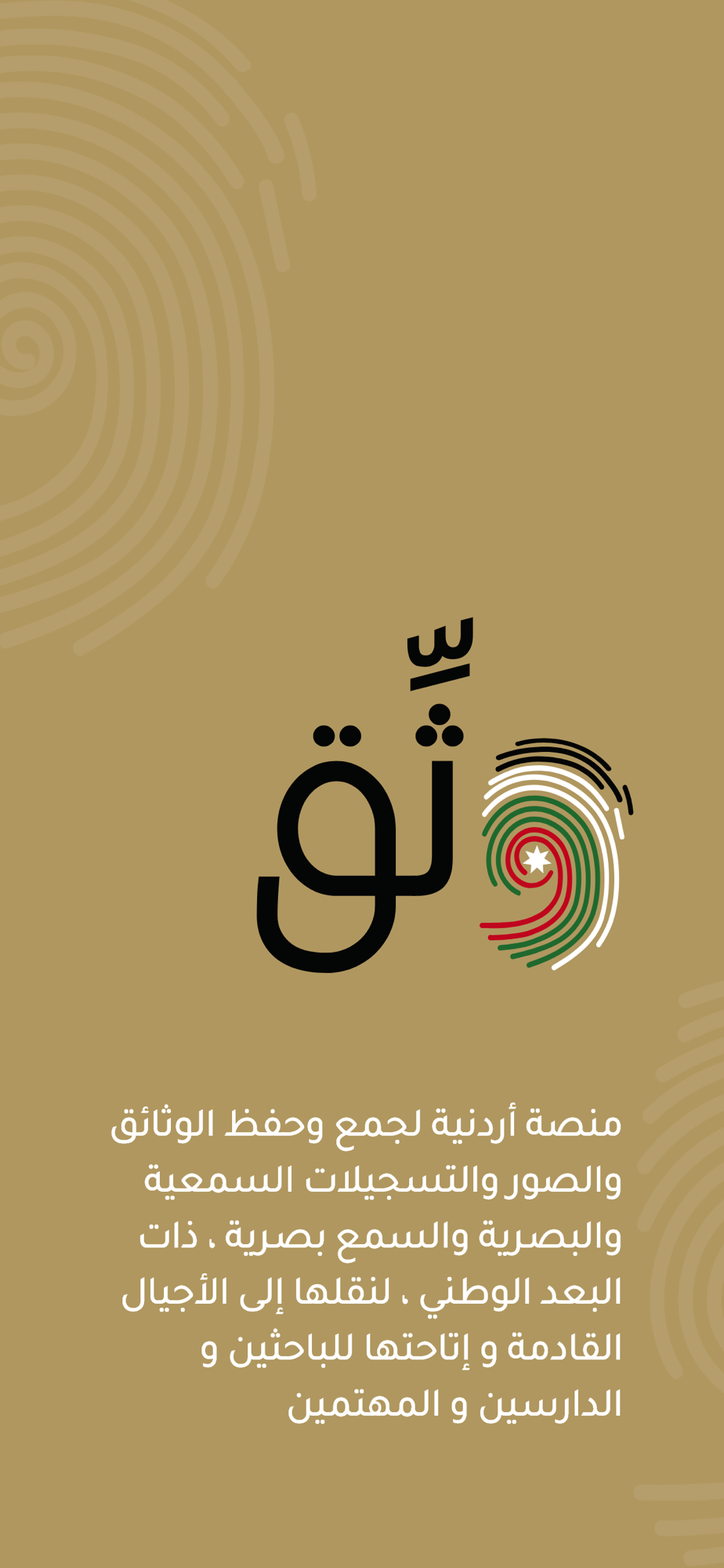 منصة أردنية لجمع وحفظ الوثائق والصور والتسجيلات السمعية والبصرية والسمع بصرية ، ذات البعد الوطني ، لنقلها إلى الأجيال القادمة و إتاحتها للباحثين و الدارسين و المهتمين المزيد.