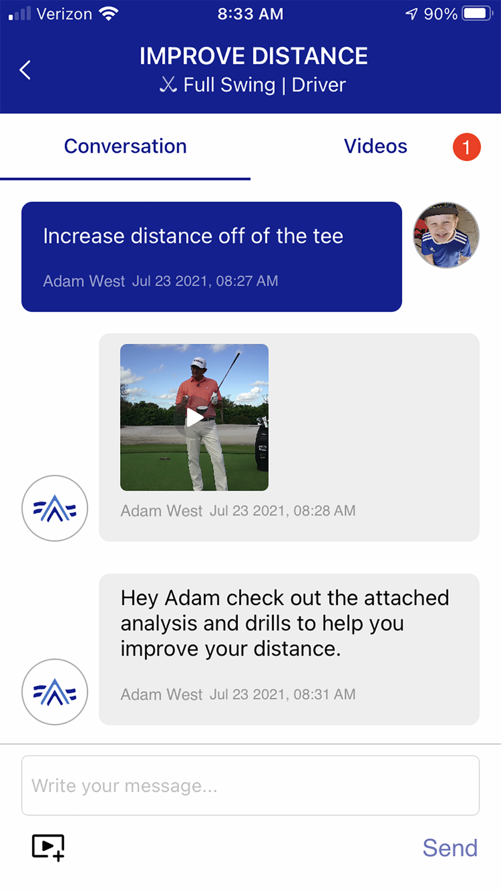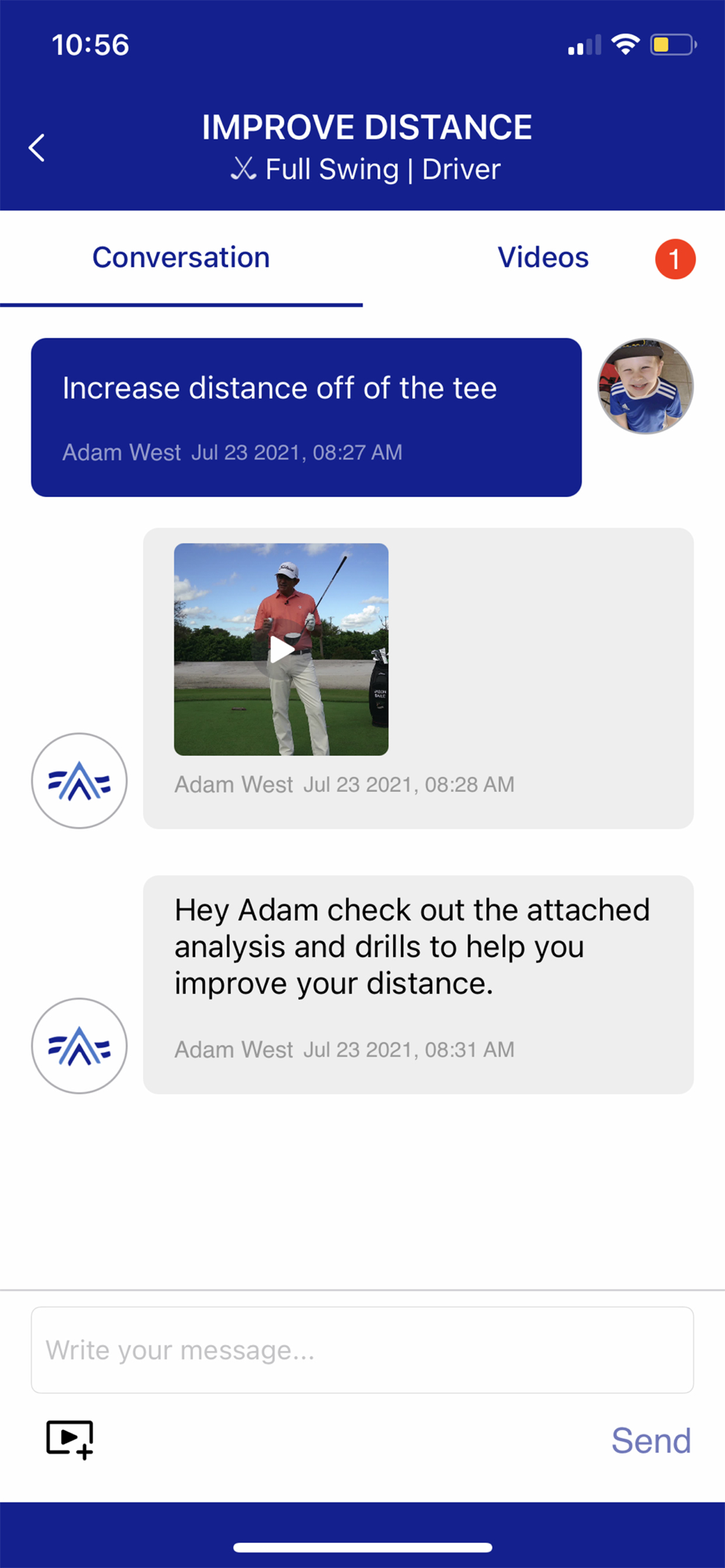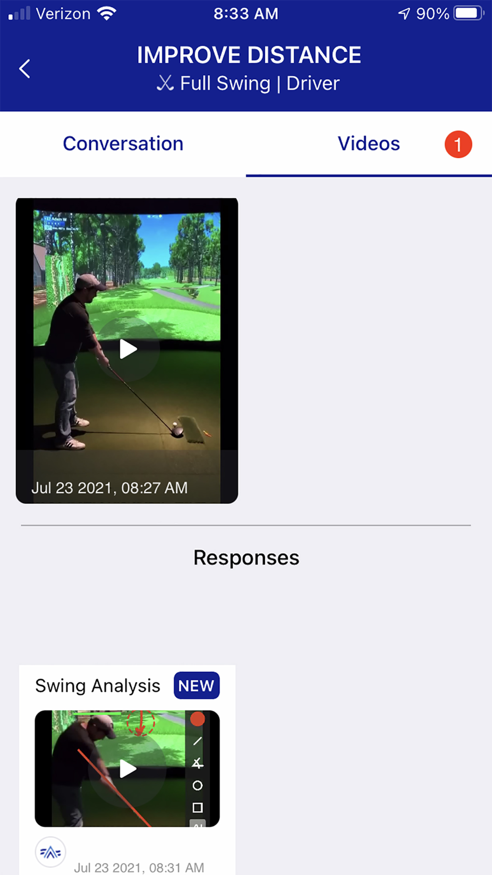 Student Swing Locker: Where the students can store videos of their swing to see their improvements