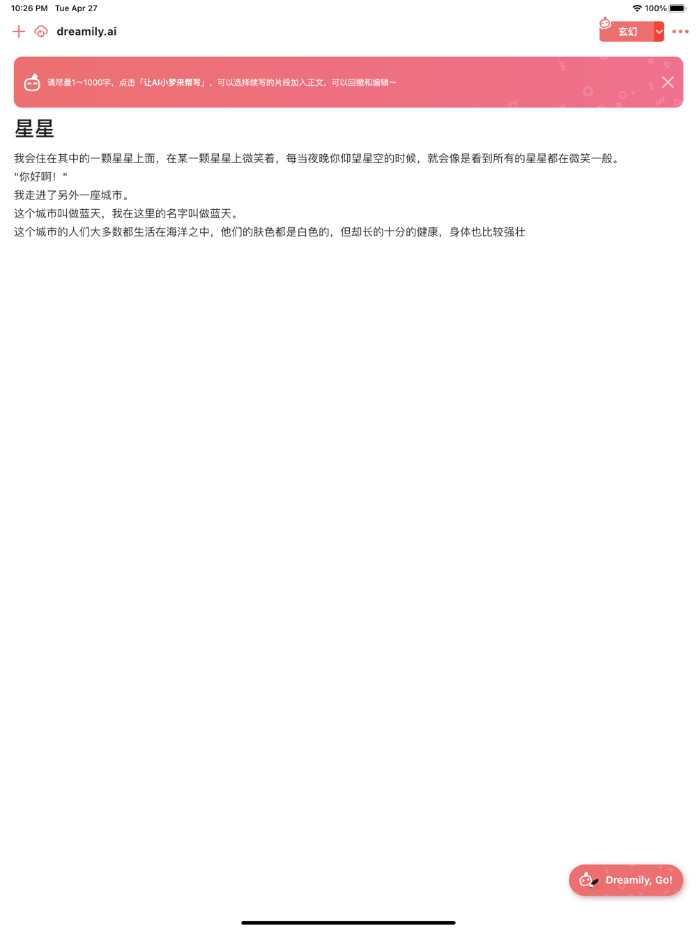 是否在文学的世界遨游时,您的心里也会涌起一段妙想呢?【彩云小梦】帮您捕捉您的每一段想象,让我们的续写AI用文学之线,串起您每一段妙想的珍珠。