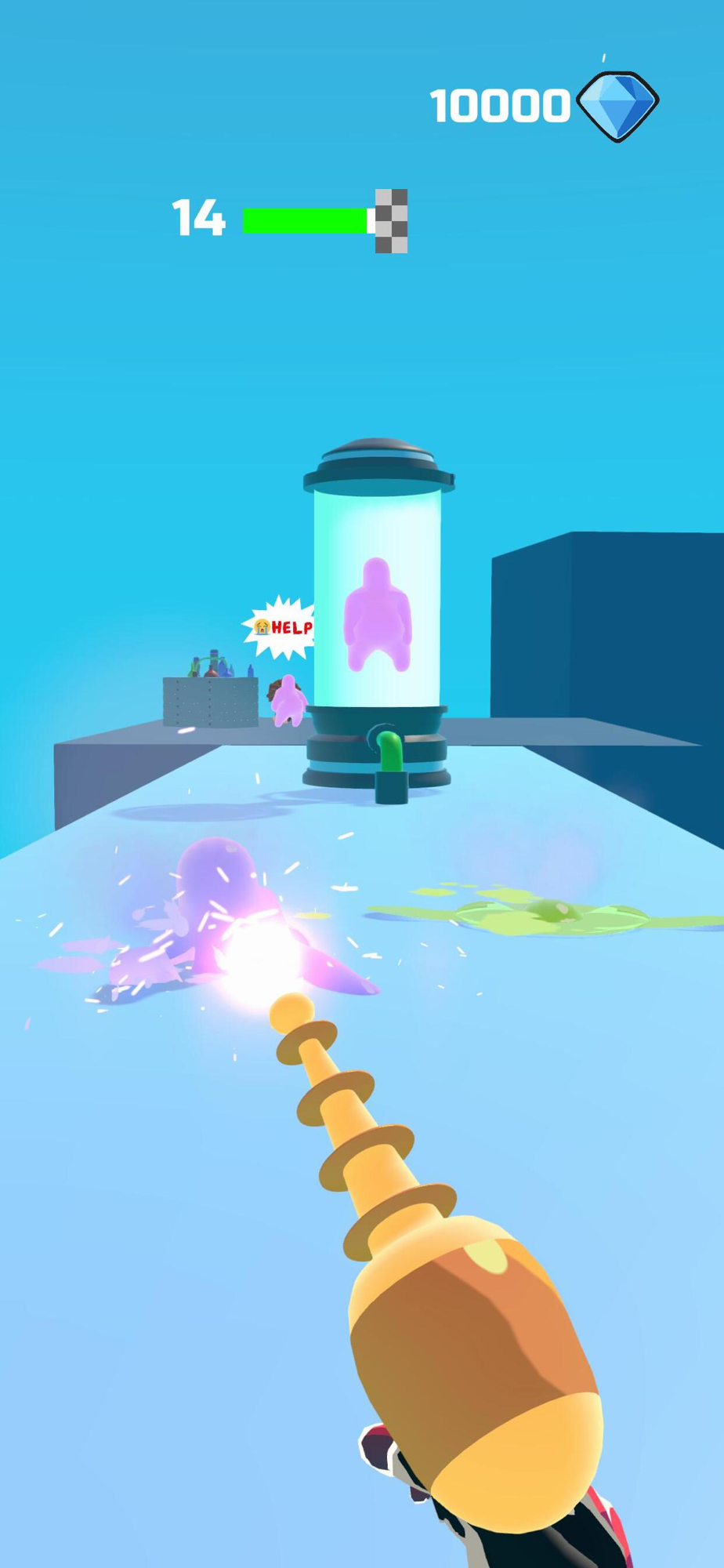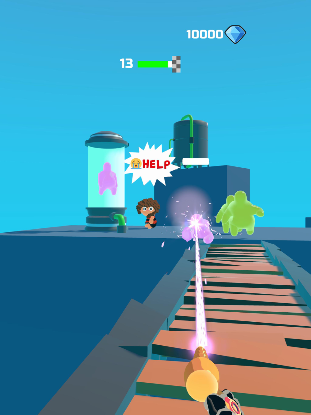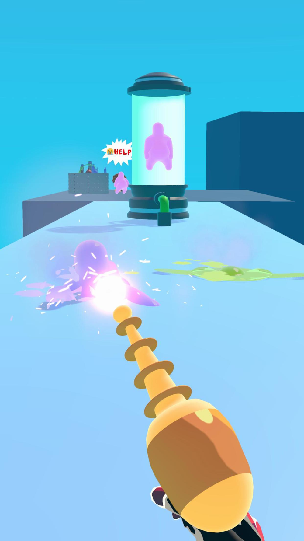 Run , jump and shoot to melt your foes into muddy blobs. Use traps to crush villian blobs!