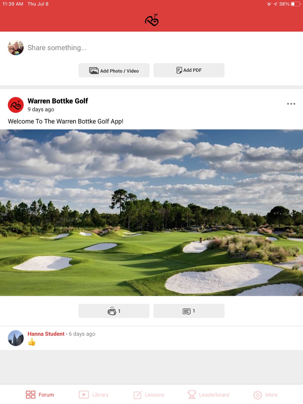 Academy Forum: A unique social feed where Warren shares VIP content, while students share photos and videos about their golf games, training and progress with the entire online academy.