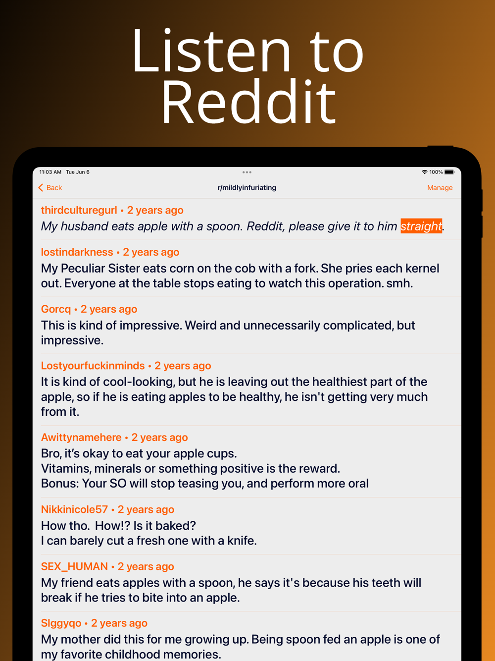 Don't let your busy schedule keep you from enjoying your favorite Reddit content. Meet Spokit, the app that transforms Reddit posts into an immersive listening experience.