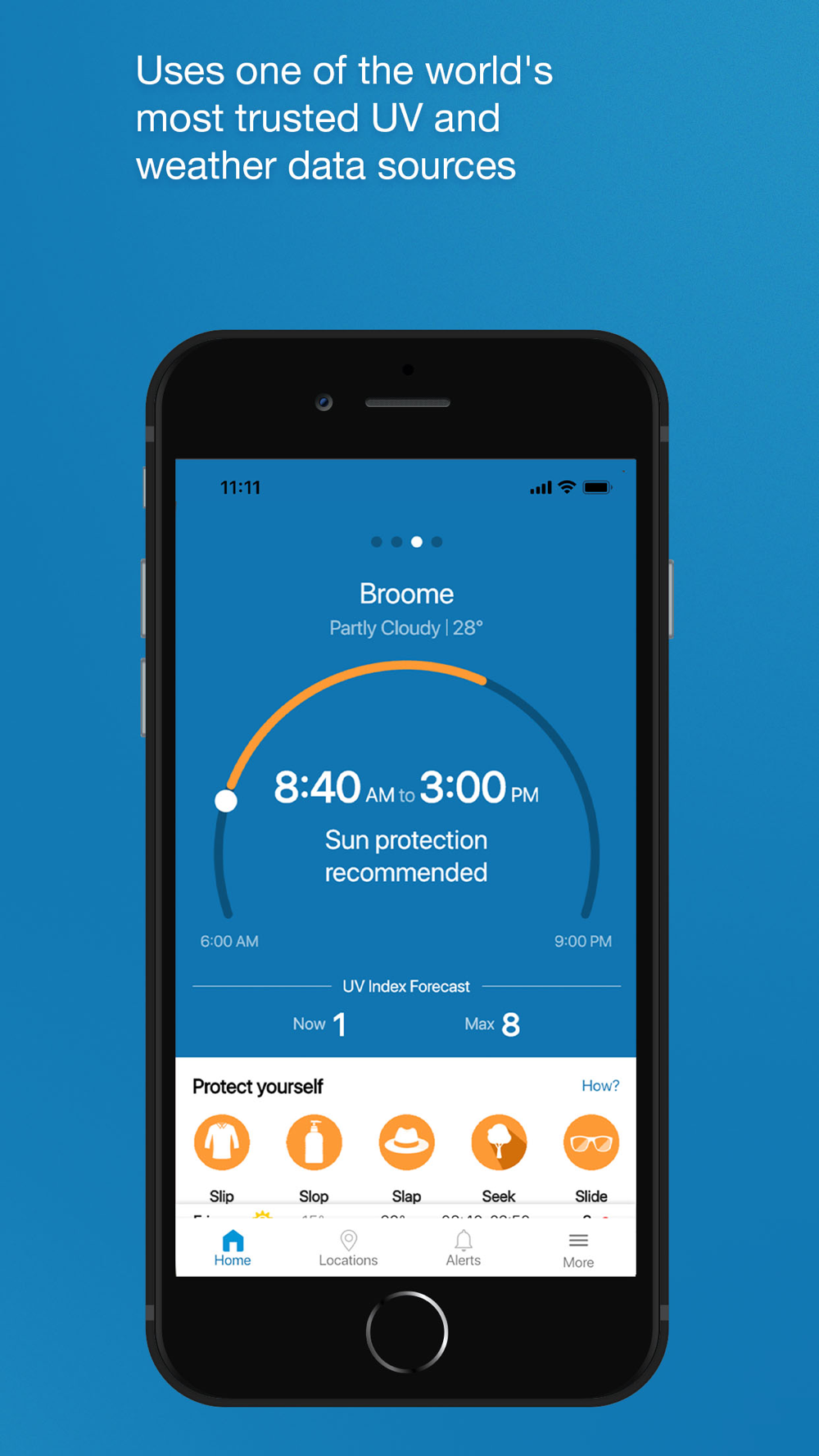 The app will advise you that sun protection is required during specific times when the UV is forecast to be 3 and above so that you can adequately protect your skin.