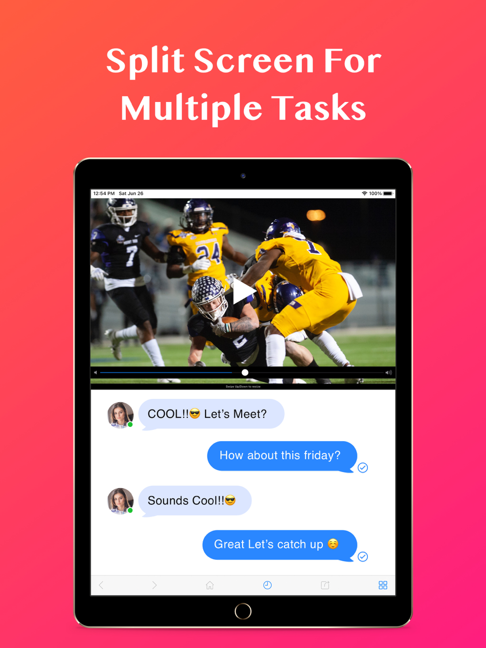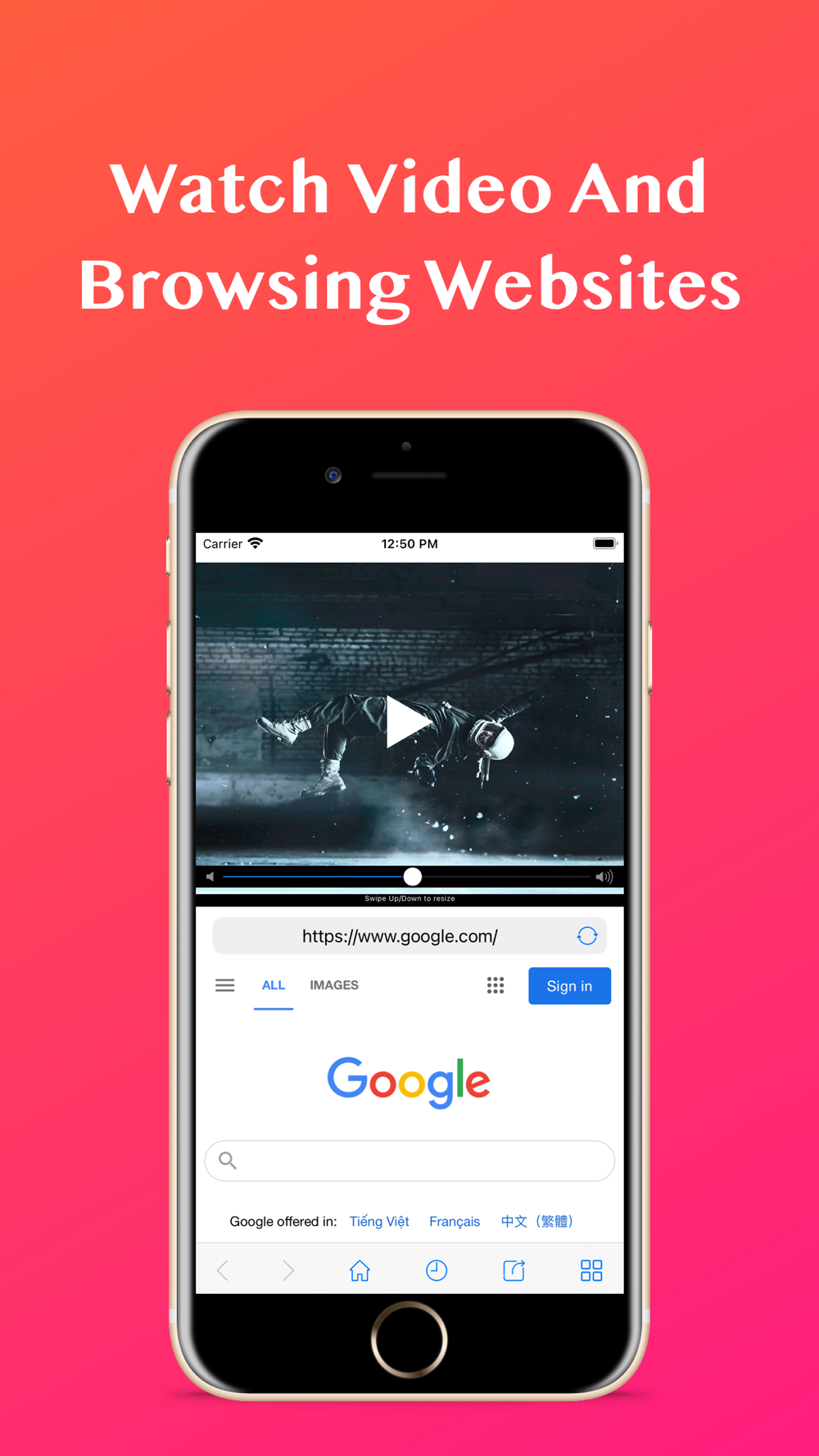 Split your screen, you could browse your Facebook, Instagram, Youtube... or favorite website and watch any videos at the same time.