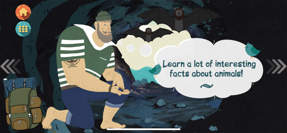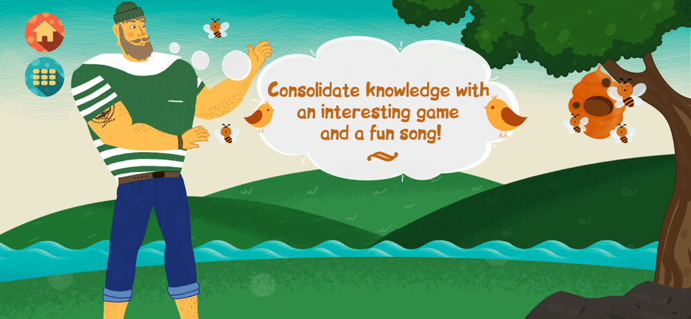 Once on our island, the child learns many interesting facts about animals which makes the process of learning letters even more fascinating: how does a bear roar? what color is the tongue of a giraffe? and why is a shark very dangerous? The child learns all this and more from our ABC app!