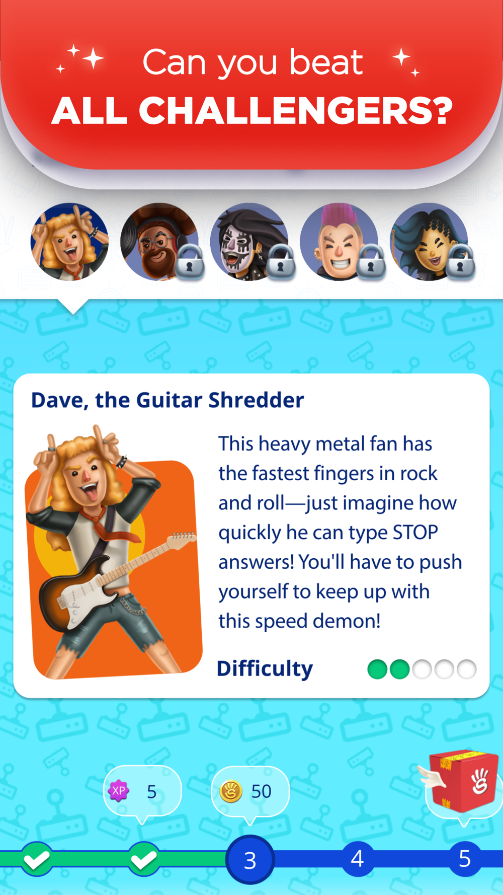 - Learn new words, answer questions, meet new people, and become a STOP champion and master.