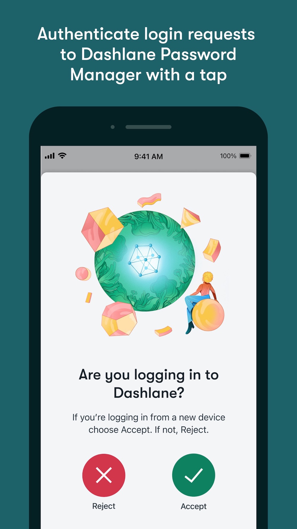 - Get push notifications to verify your identity when logging in to Dashlane Password Manager on a new device—instead of waiting for and retyping a six-digit token