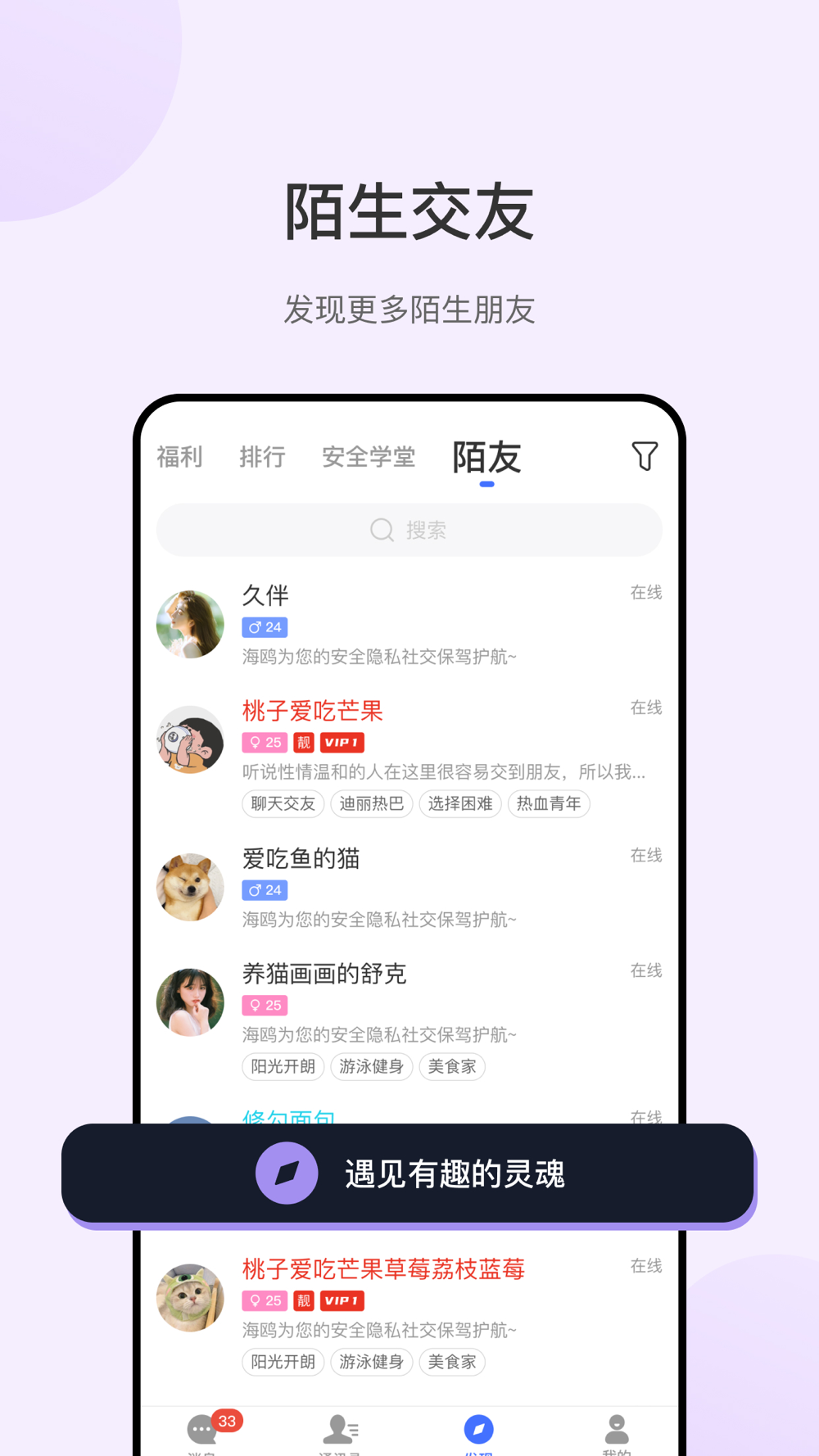 【陌生交友】发现更多兴趣相投的陌生朋友;