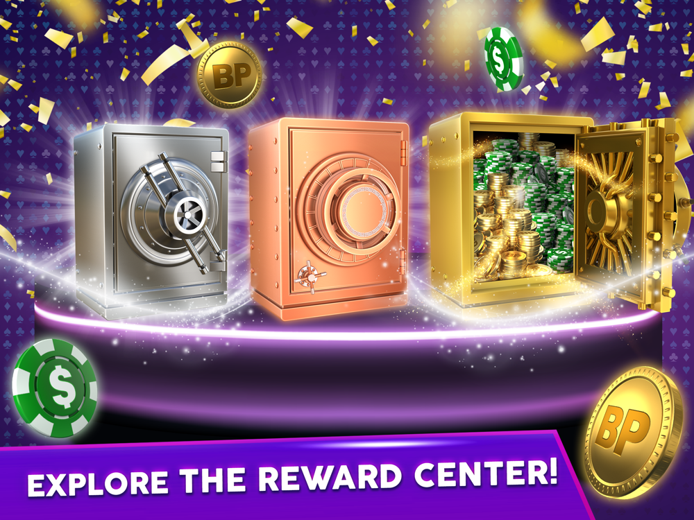 Get your welcome bonus, come back everyday to collect many more prizes with free spin and daily bonus, go to the Reward Center to open bronze, silver, gold vaults full of huge rewards.