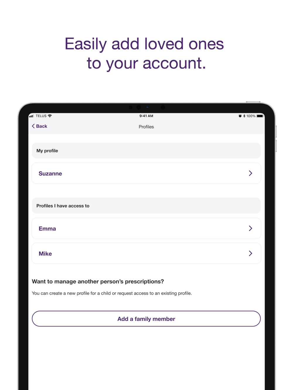 The Virtual Pharmacy application is the easiest way to connect with a pharmacist and order, track, and manage prescriptions for you and your loved ones. The app is free to join, there are no hidden fees, and Canada-wide delivery is complimentary.