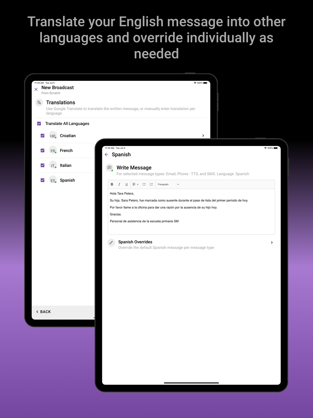 For school/district administrators, the easy-to-use app allows users to quickly create and send messages to one or more targeted SchoolMessenger Communicate notification lists. Requires WIFI or data plan for internet access. Requires SchoolMessenger Communicate service subscription.