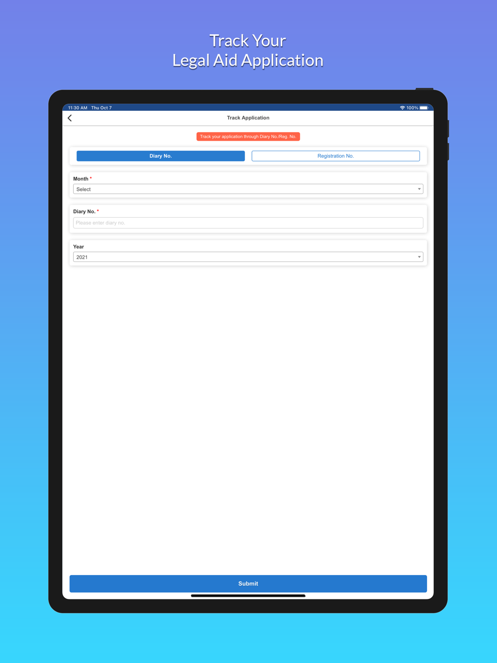 2. Any citizen may track his application submitted for legal aid & advice and other grievances.