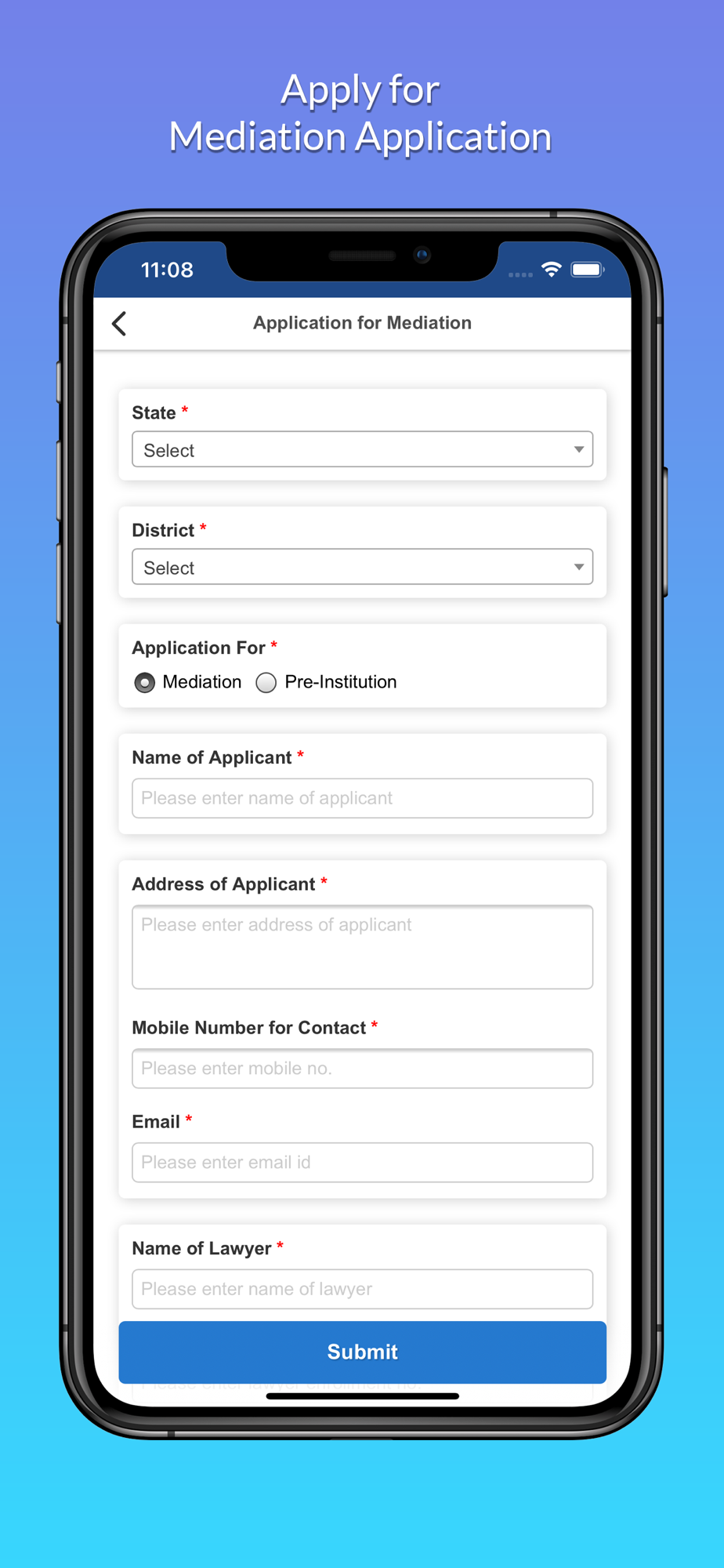 5. May file Application for Mediation, in particular for pre-institution mediation in commercial matters through this Mobile App.