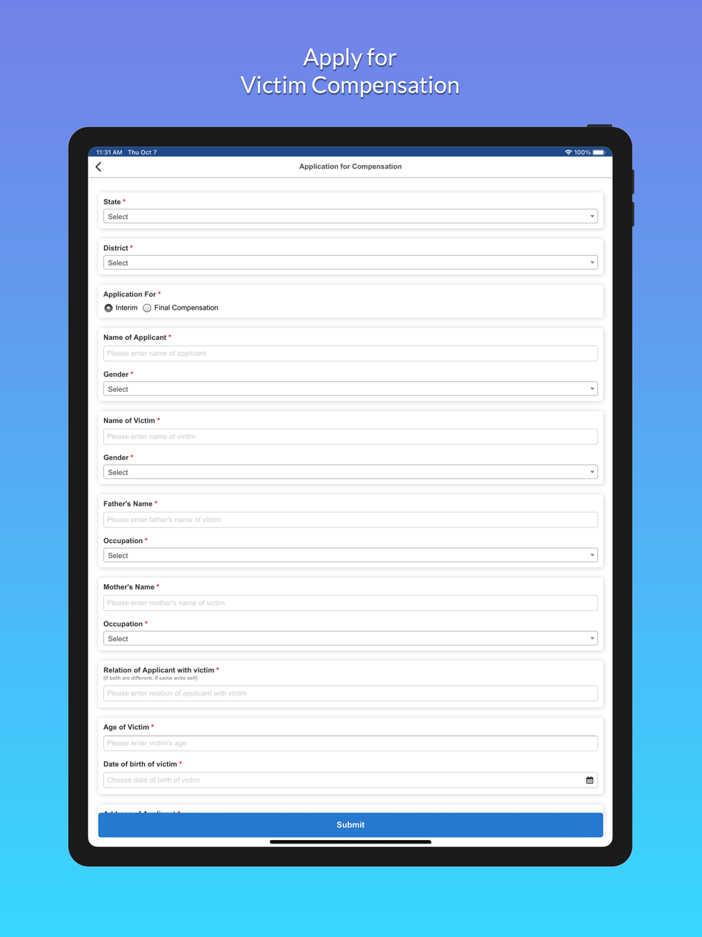 4. Any victim of crime or his relative/ friend can apply as applicant for victim compensation.