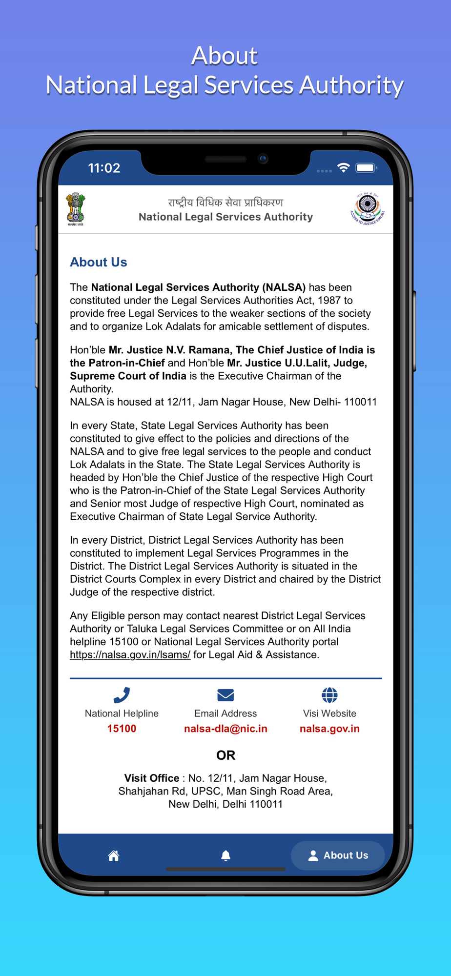 Any citizens, who is unable to afford legal services then he has a right to free legal aid at the cost of the state. Through this app anyone from any part of the country may apply for legal aid, related services and also for permissible assistance from the Supreme Court Legal Services Committee, 37 State Legal Services Authorities, 39 High Court Legal Services Committees, 672 District Legal Services Authorities and 2282 Taluka Legal Services Committees. NALSA Legal Services Mobile App to facilitate following functions: