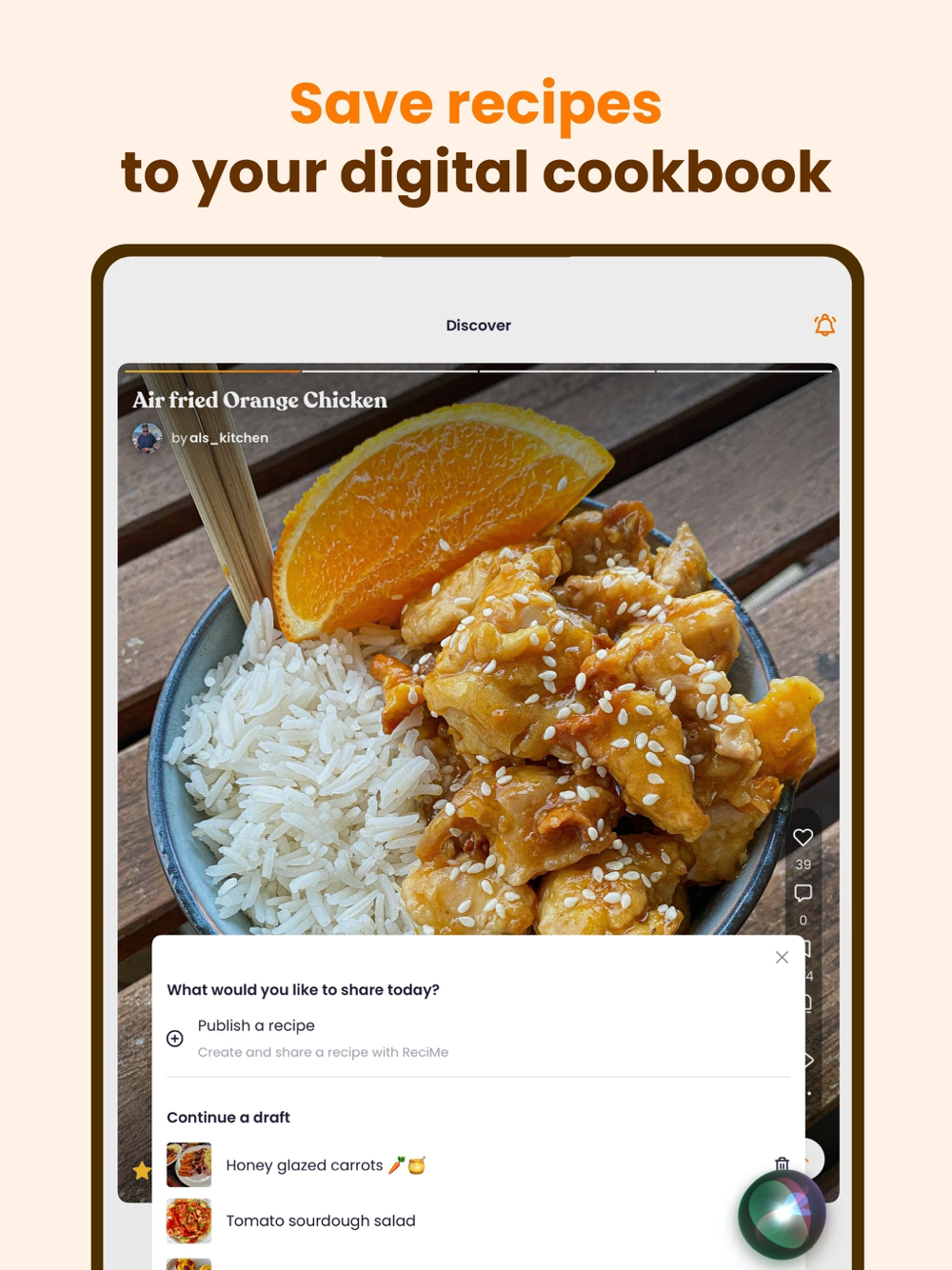 ReciMe is the ultimate cooking app to share, discover and save recipes from your cooking community!
