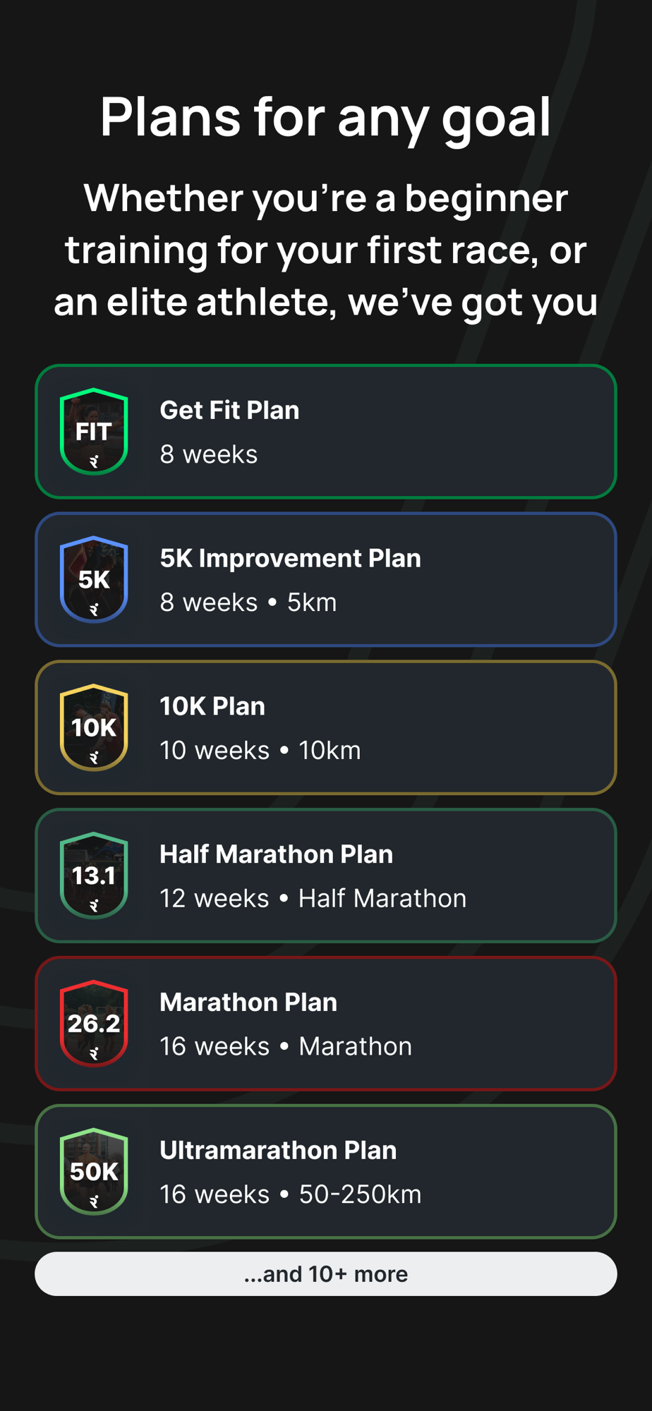 Embark on an unparalleled running journey with Runna. More than just a pocket-sized running coach, Runna is your comprehensive running companion. From beginners embarking on their first park run to seasoned athletes gearing up for challenging marathons, our app is crafted to cater to all. Our offering includes training for 5k, 10k, half-marathons, marathons, and ultra marathons. This is probably why we boast a stellar 4.9/5 rating on Trustpilot.