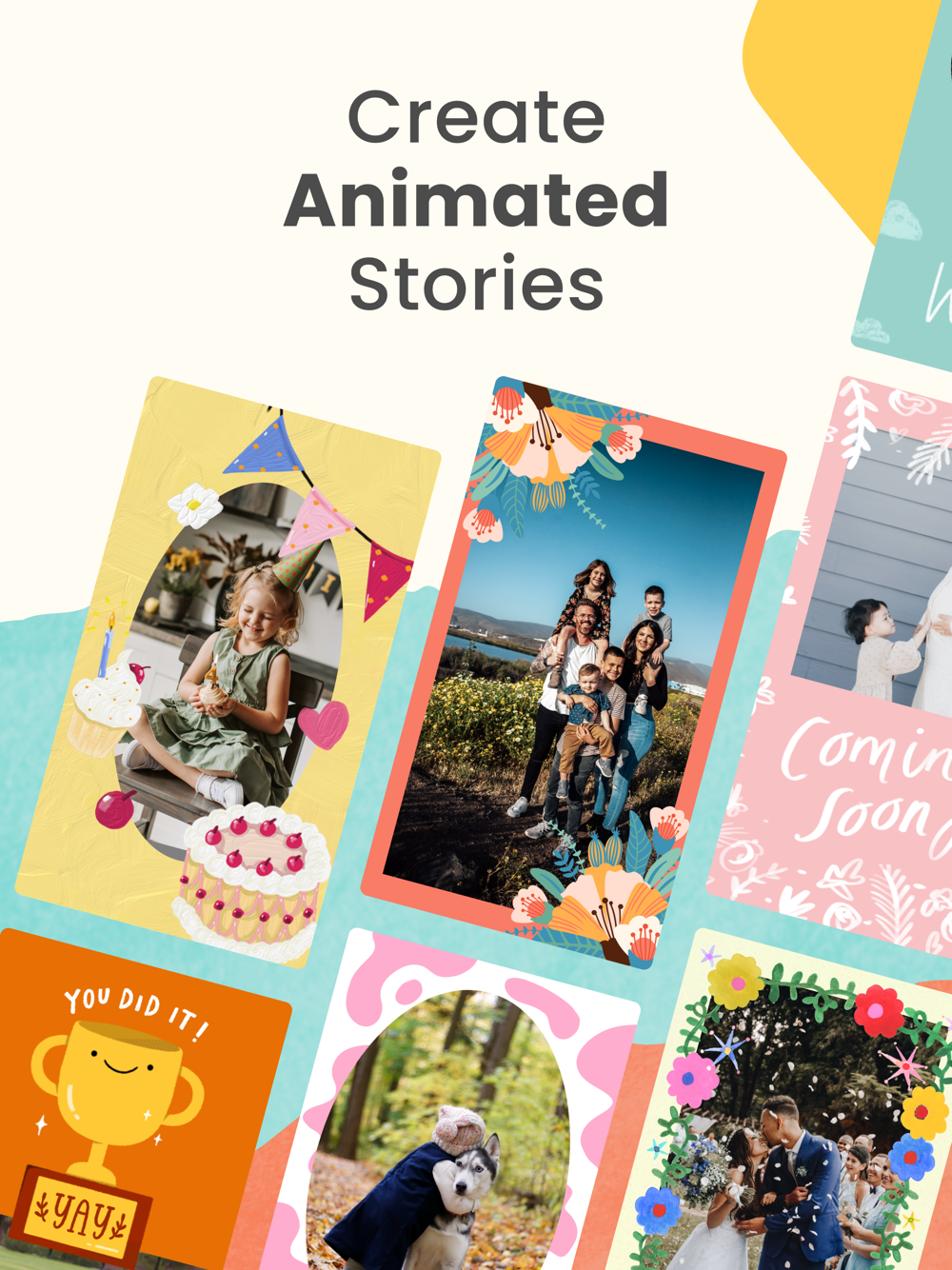 - 50+ specially curated layouts and animations ready to bring out the best of your stories.