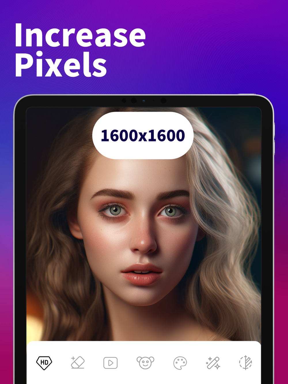 Enlarge and enhance your blurry photos to make them sharper, crisper, and cleaner. Retouch and deblur face. Enhance the hair, eye, lips and skin. Get gorgeous, clear HD portraits with best AI face enhancement technique. Fix old, pixelated, blurry, noisy, grainy, pixelated, damaged, low-resolution and low-quality photos instantly.