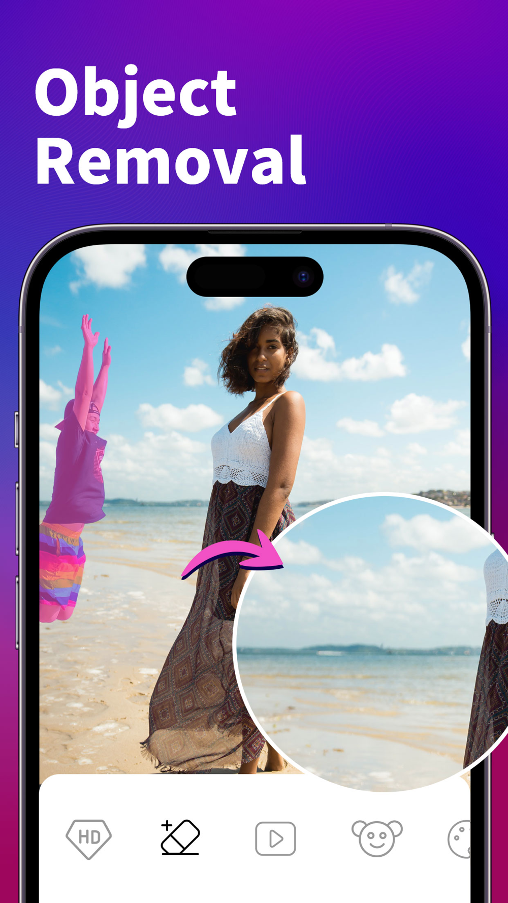 Remove anything unwanted. Passersby, trash cans, wires, clutter, obstructions, all the things you don't like can be removed with a simple touch. Magic Cut & Fill with stunning results as if things never existed before.