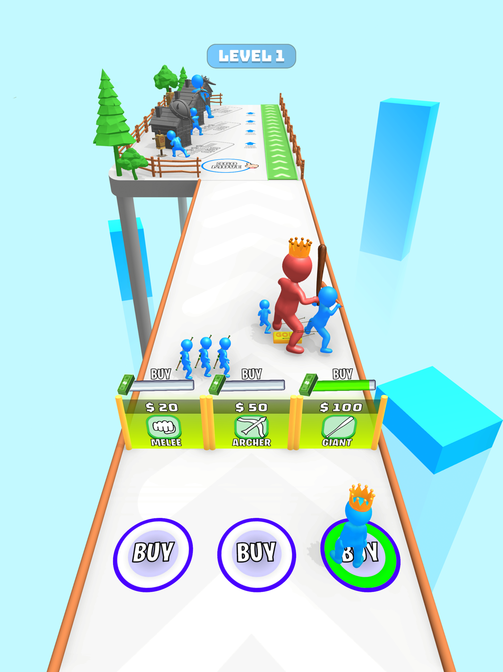Gather your army by collecting money and spending it on the right gates.
