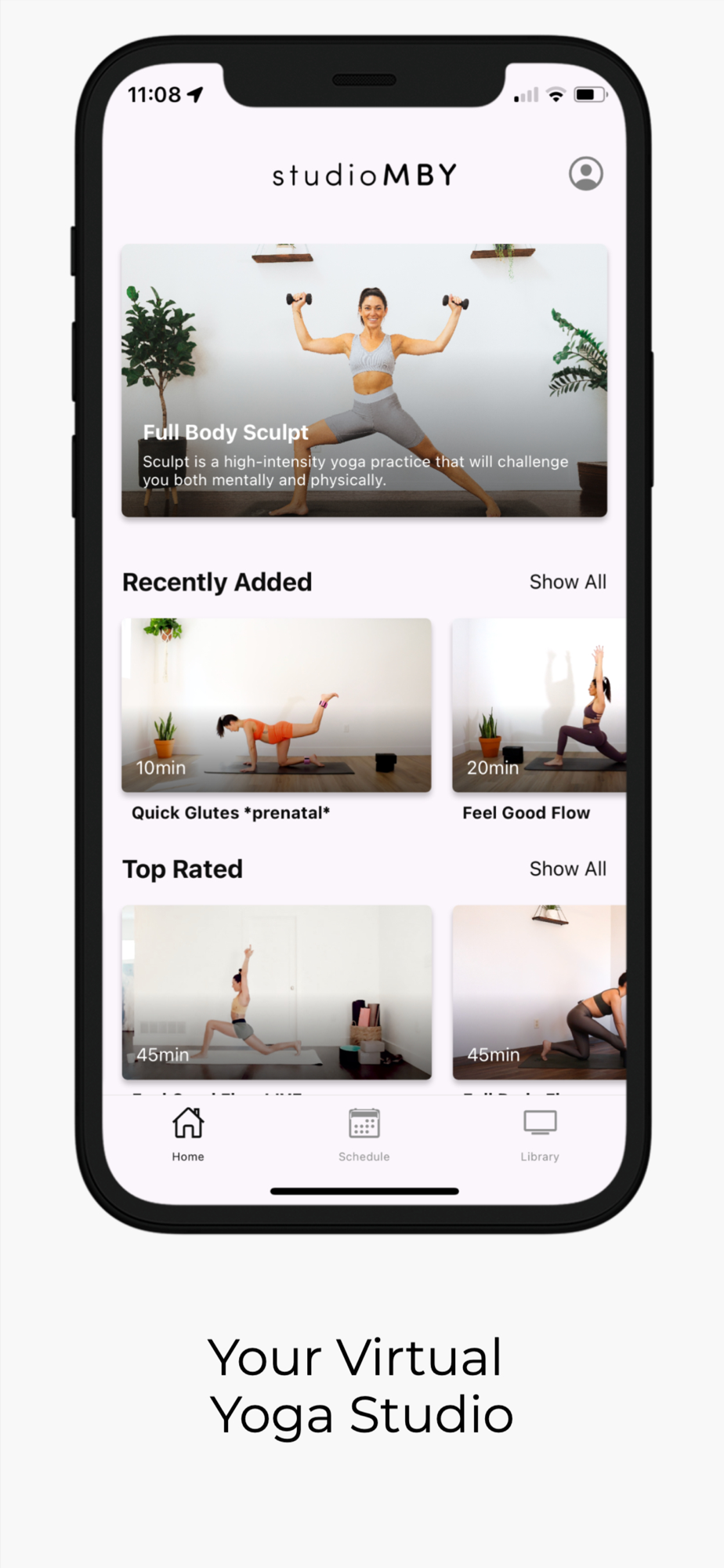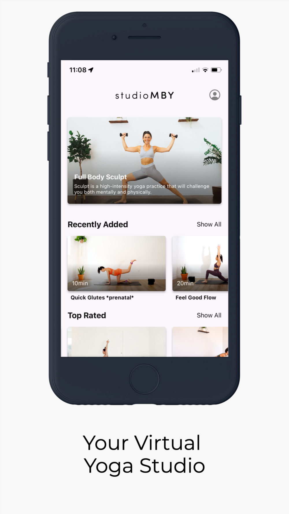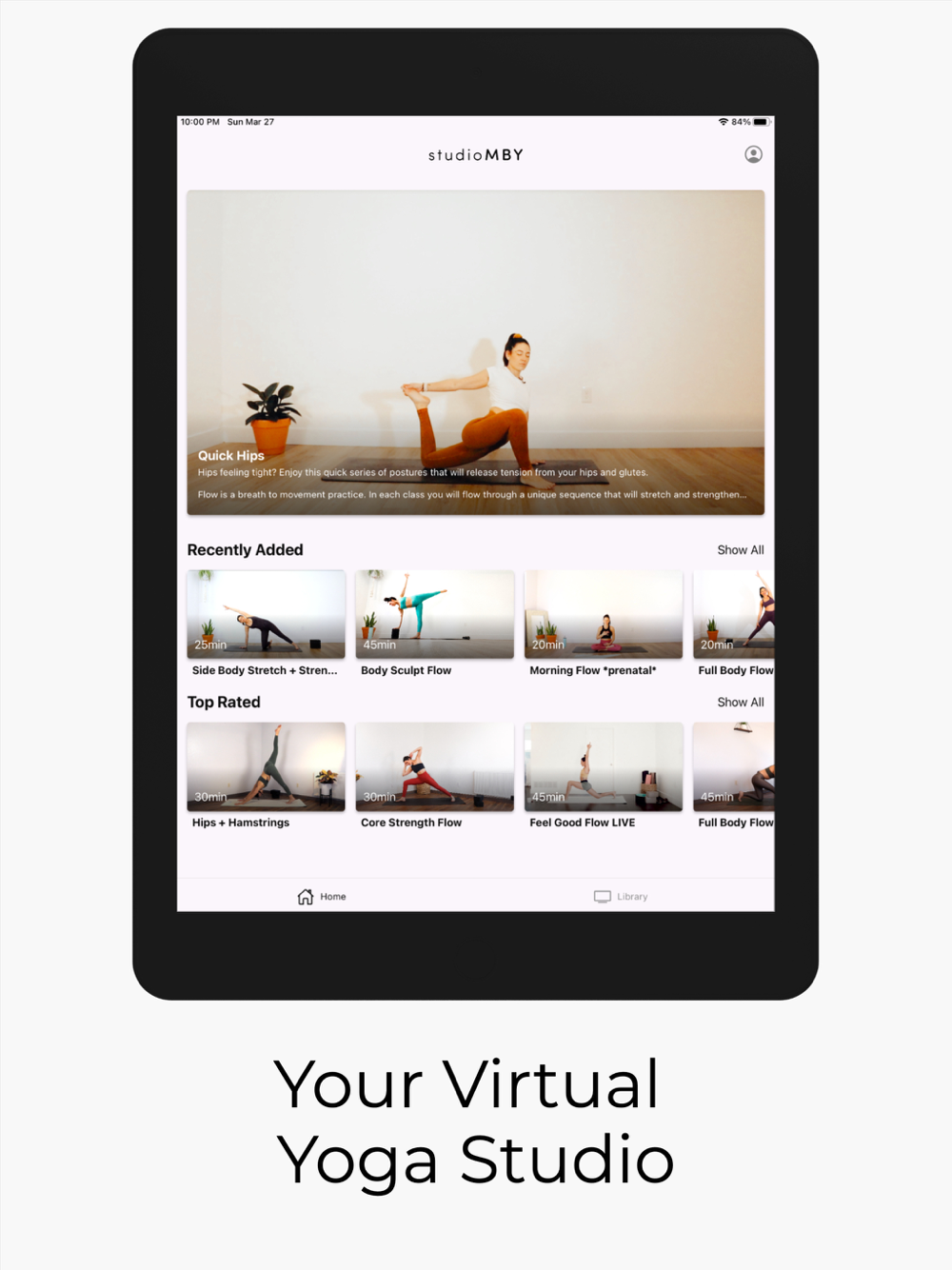 studioMBY is your virtual yoga studio go-to! With over 200+ on-demand classes practice anytime anywhere. studioMBY offers a variety of classes including Sculpt, Flow, Restorative, and Prenatal Yoga. Each class sequenced to create a deeper mind and body connection on and off the mat.
