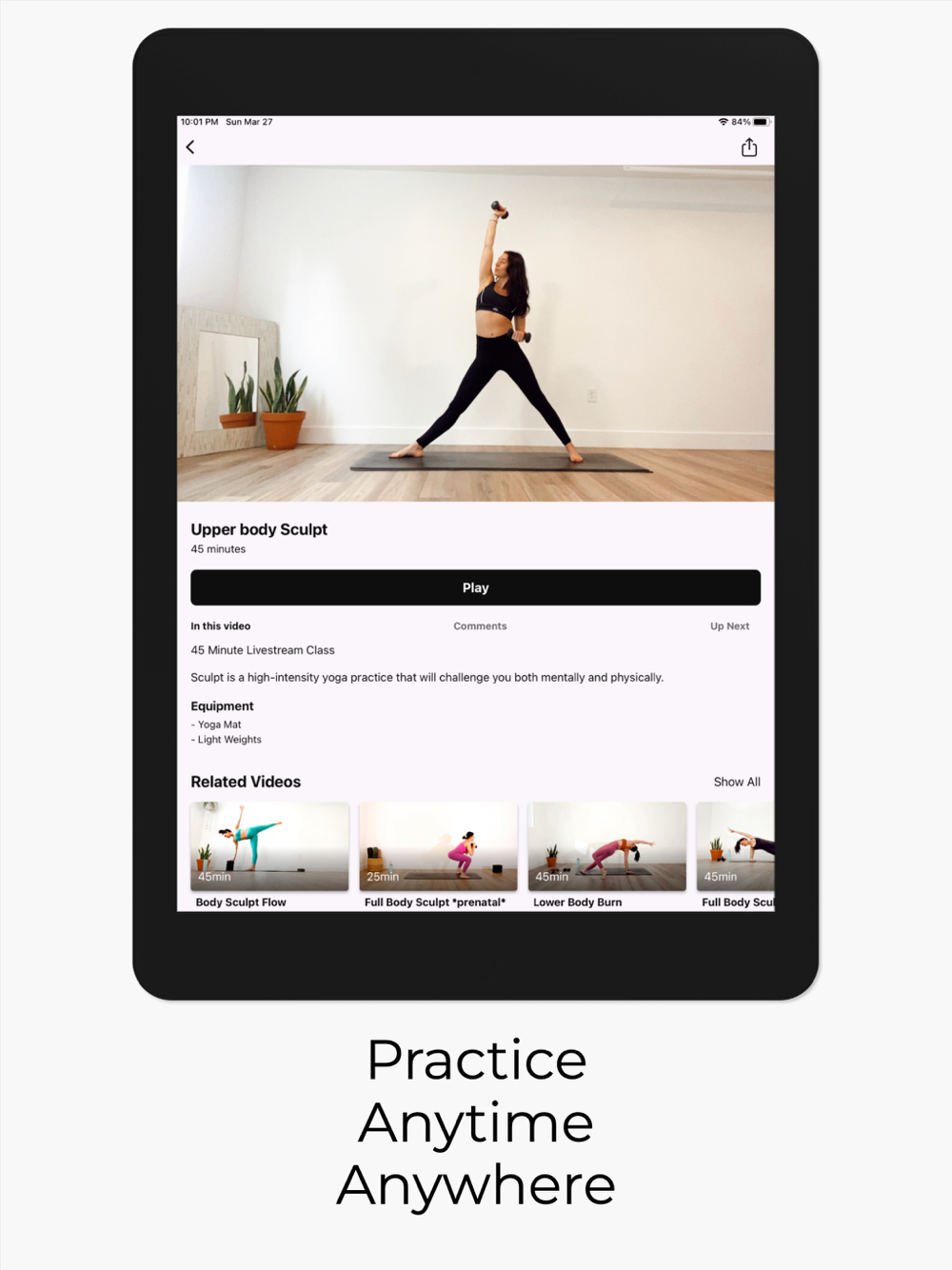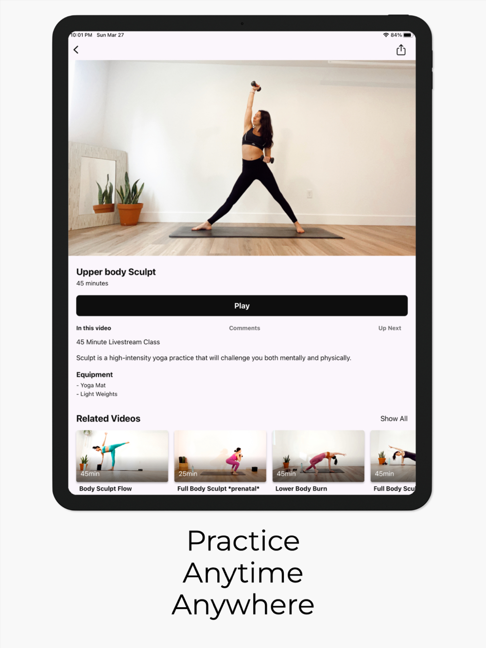 - Access to 200+ on demand sculpt, flow, restorative & meditation classes