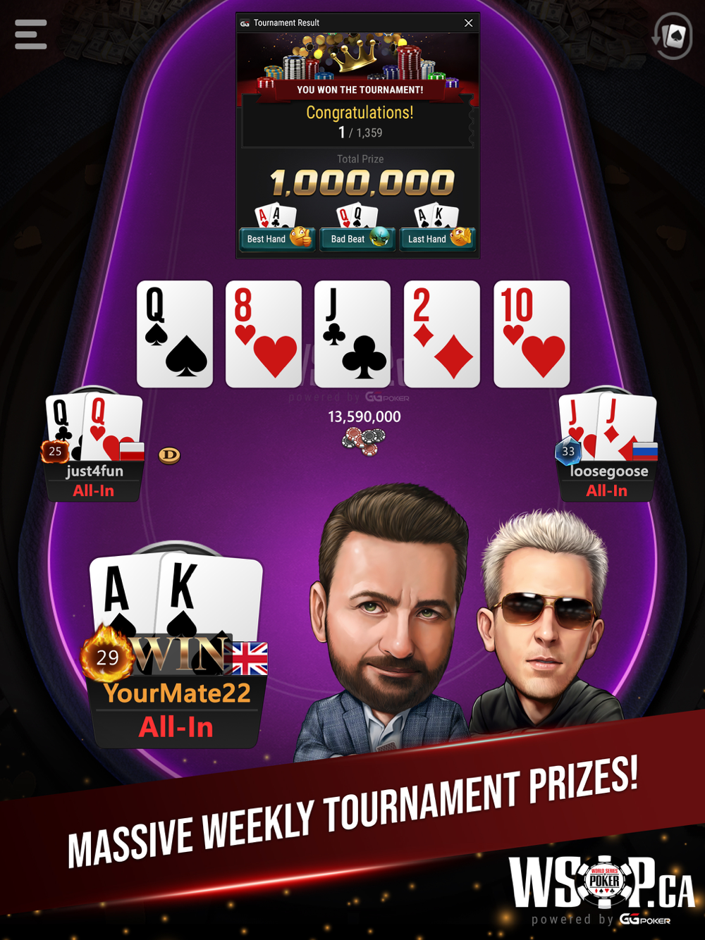 WSOP.CA (powered by GGPoker) is the online poker app that allows you to play casual poker games with millions of players to hone your poker skills.
