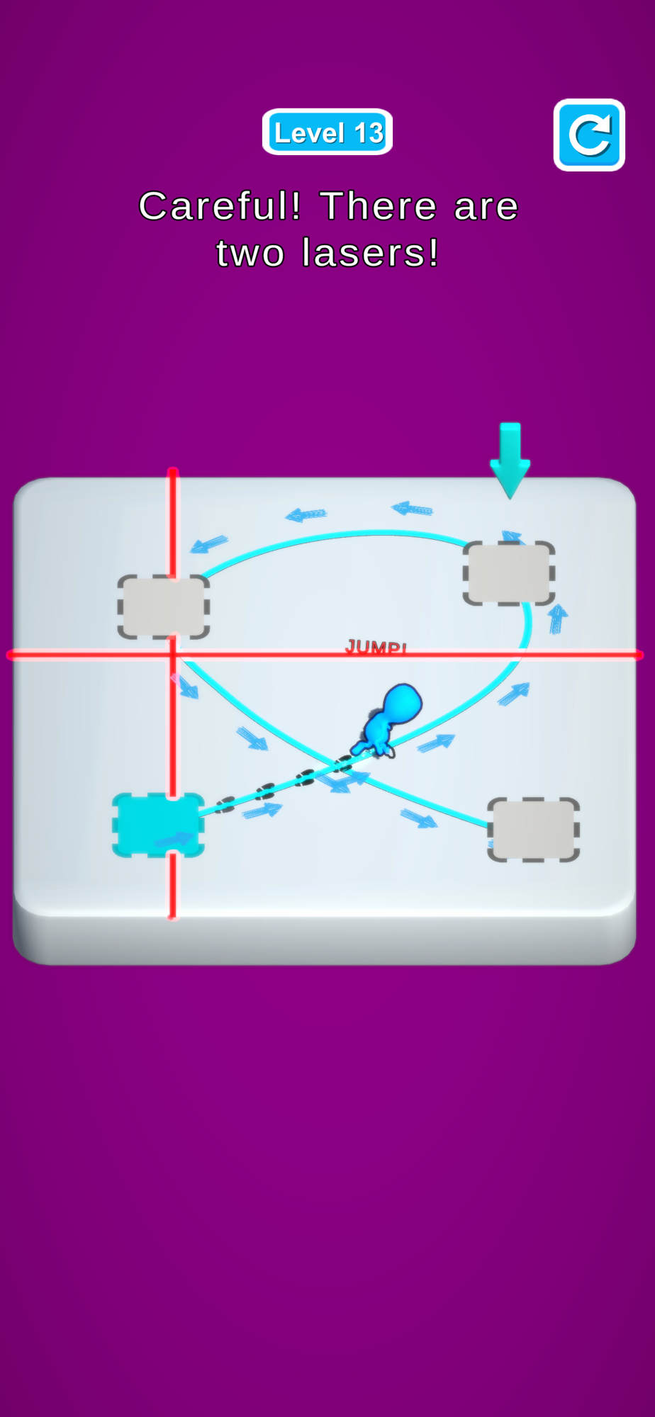 Tap to screen for start to run and tap again for jump to avoid from lasers! Run to other checkpoints and turn them to green! If you reach all checkpoints then you will finish the level!