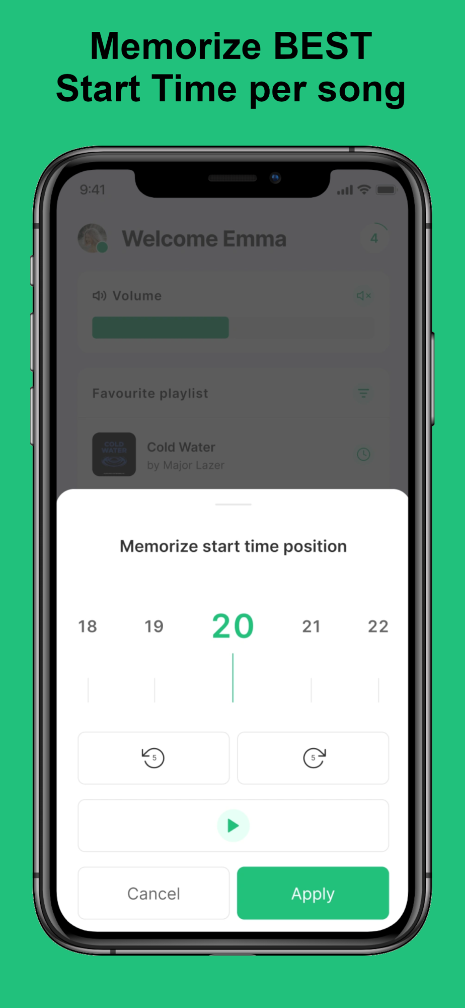 You can memorize for each song the best start moment, and with easy select and play/stop buttons you will create a beautiful ambiance.