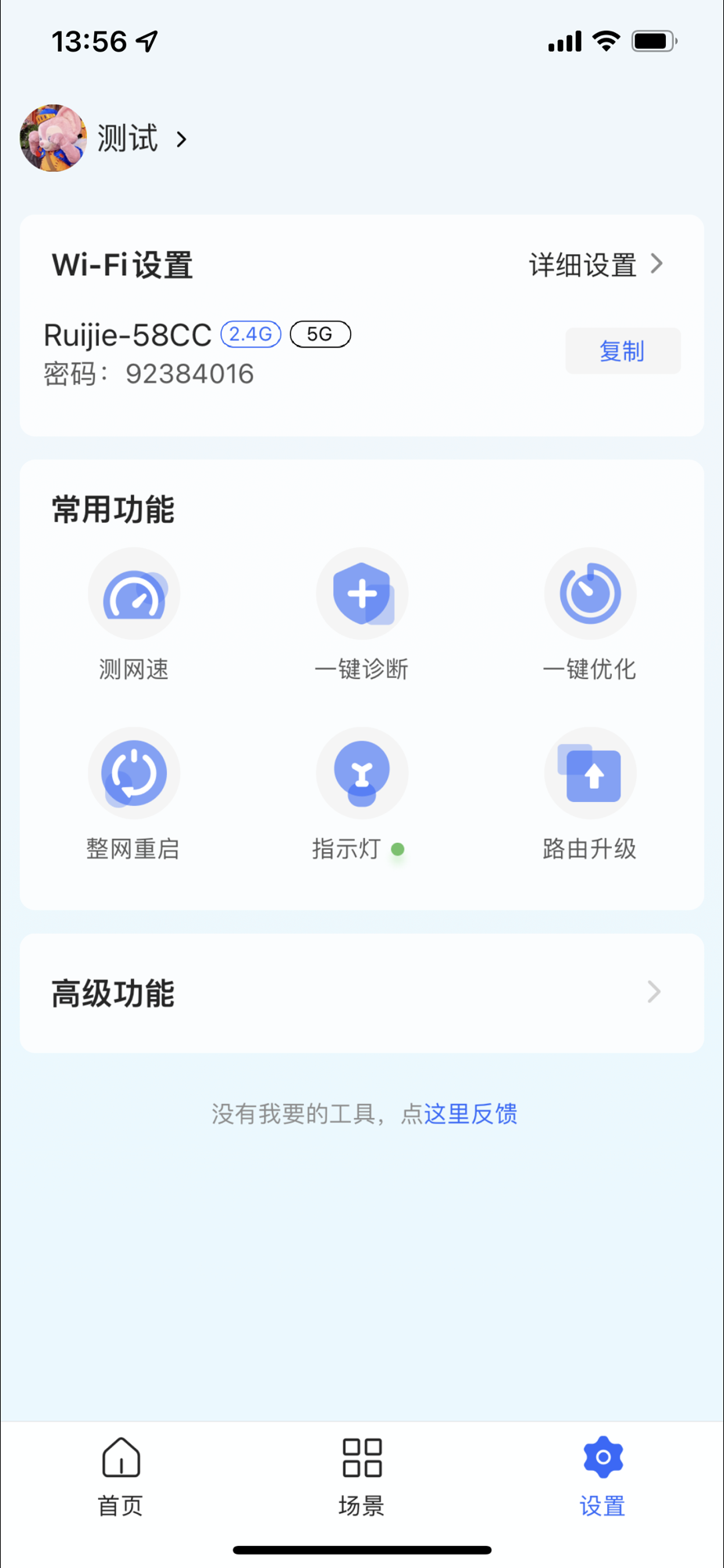 -WiFi管理:支持查看、分享、修改WiFi名称与密码,支持调整WiFi强度与其他专业配置,“一键优化”让无线网络稳定且流畅。