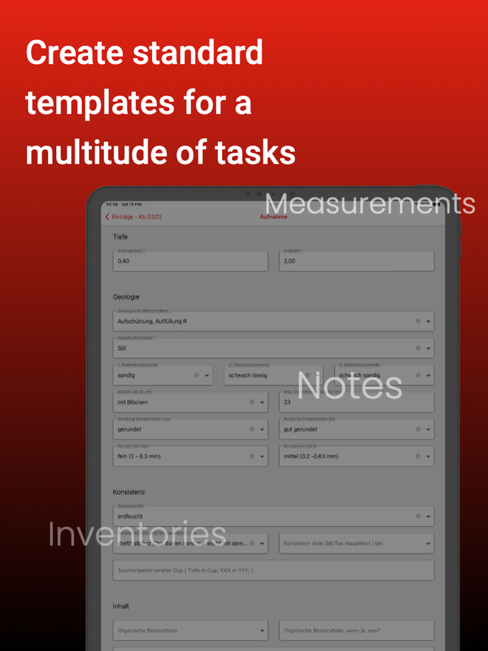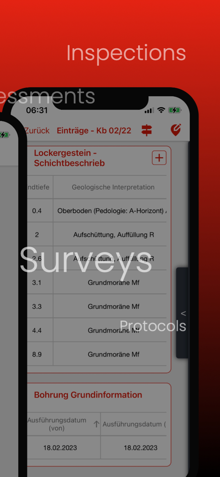 Our existing FeldApp system has been used for a wide range of topics and activities - from recording inclinometer measurements to surveying protective structures and tunnel surveys.